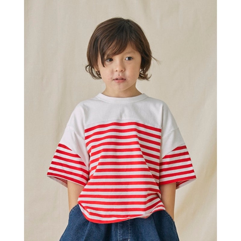 バスクシャツのように切替を加えたオーバーサイズのボーダーT。