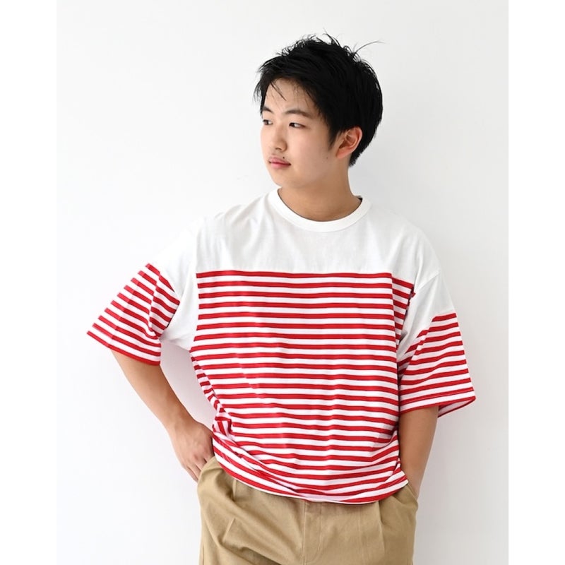5. [フォブ] ボーダー切り替えTシャツ レッド(RE)