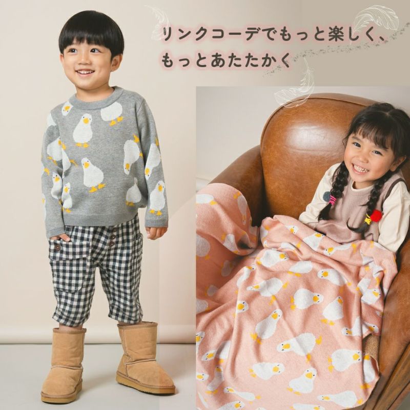 まんまるアヒルが並んだ総柄ニットブランケット。