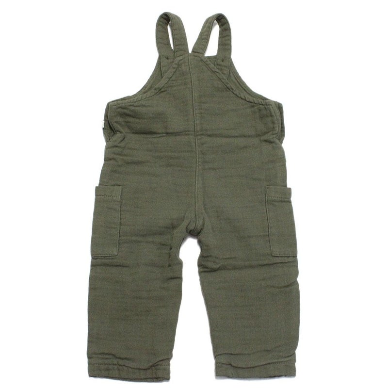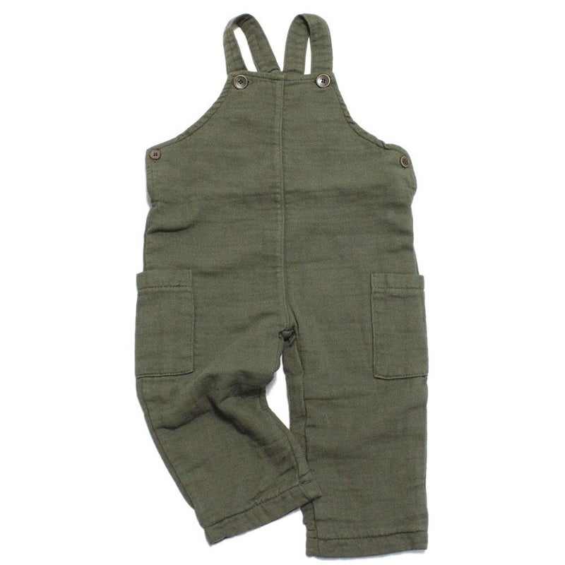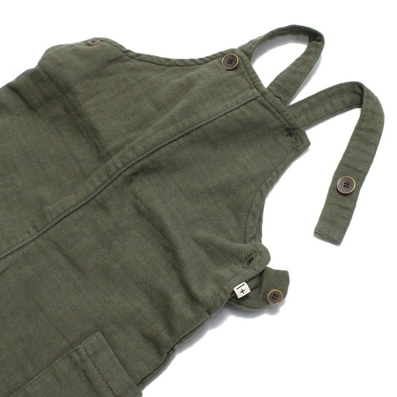 斜めストレッチがきいたコットン素材のサロペット。