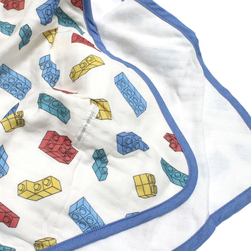 柔らかな肌触りで、吸水力にも優れた4重ガーゼのおくるみとスタイのセット。