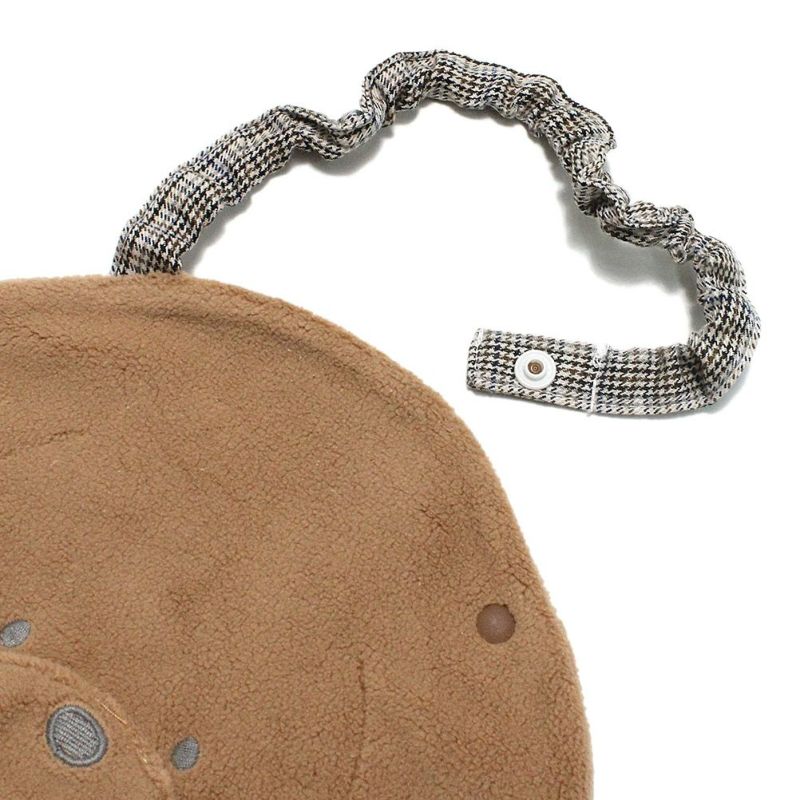 温かみのあるボア素材とチェックのストラップが優しい印象。