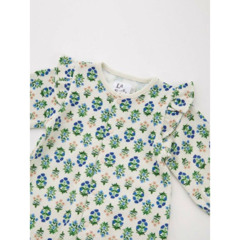 赤ちゃんの成長に合わせてスナップを留めかえると、ドレスとしてカバーオールとして長い間使えます。