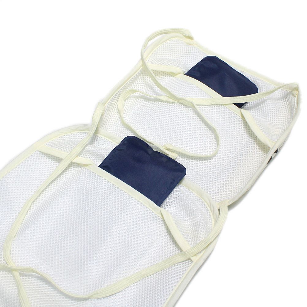 頭と背中に保冷剤を入れられるベビーカーシート。