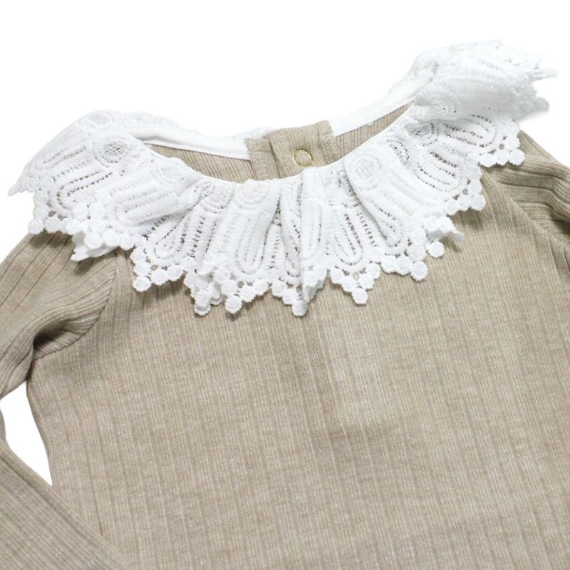 [マルーク] パウダーリブニットレースTシャツ ベージュ(12)