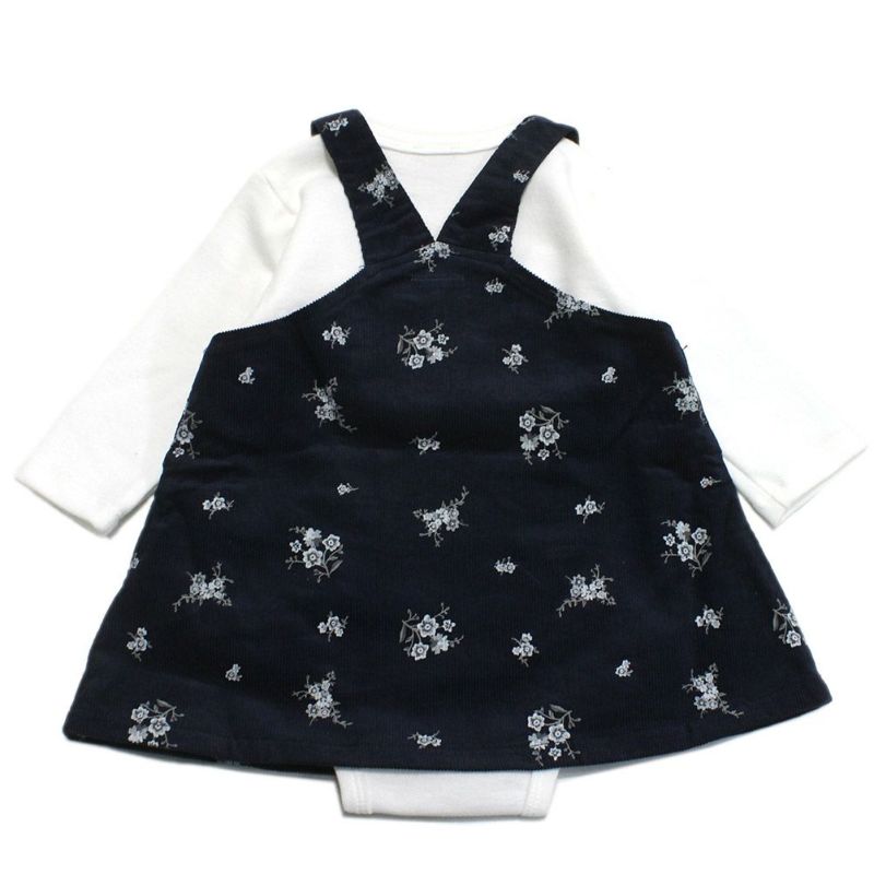 繊細な花柄に心惹かれるロンパースとジャンスカのセットアップ。
