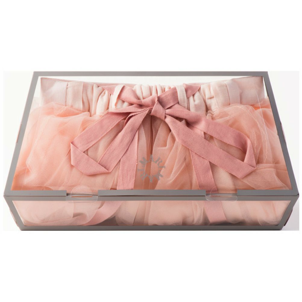 姉妹で共有することもできる1サイズ2WAY仕様で、赤ちゃんの時期はベアトップのワンピースとして、3歳前後になったらチュールスカートとして着用いただけます。