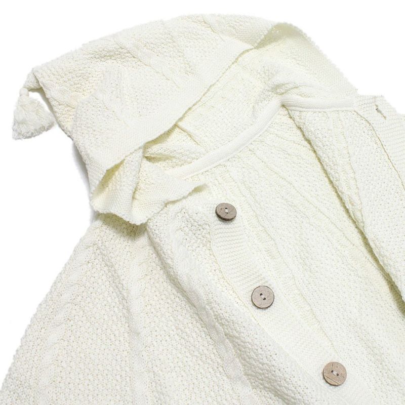 地球に優しいオーガニックコットンの糸で編み立てられたベビーケープ。