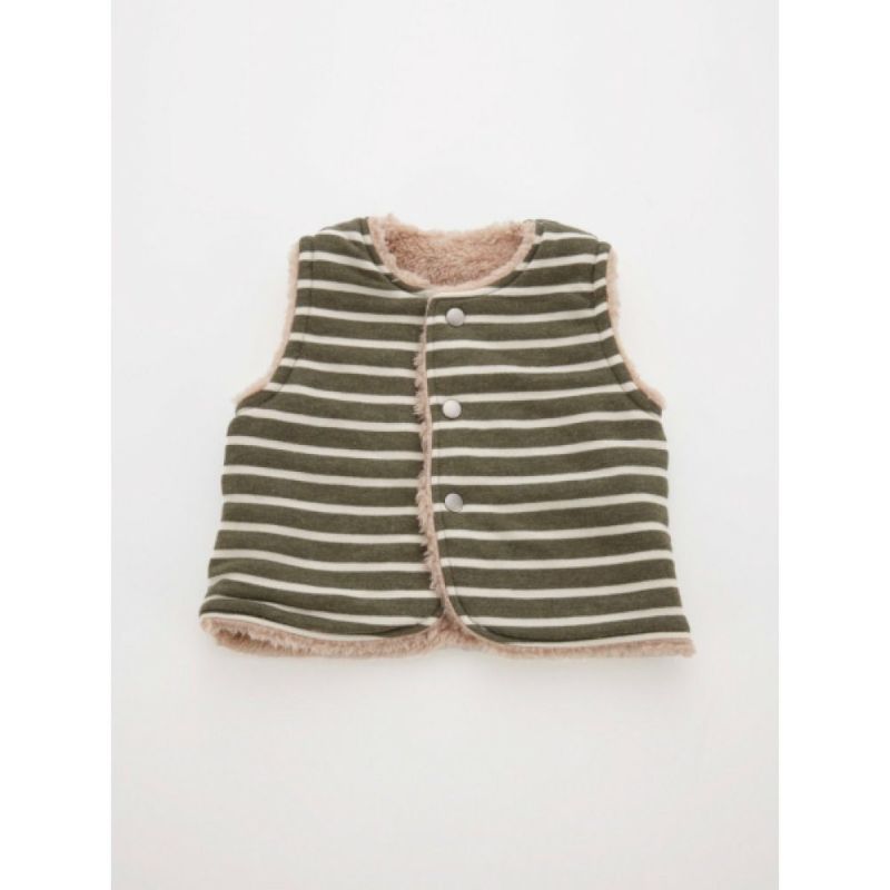 ボアとボーダー柄&ドット柄のリバーシブルのベビーベスト。