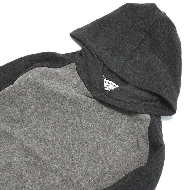 柔らかな綿混紡のカット天竺を使用したフード付きロンT。