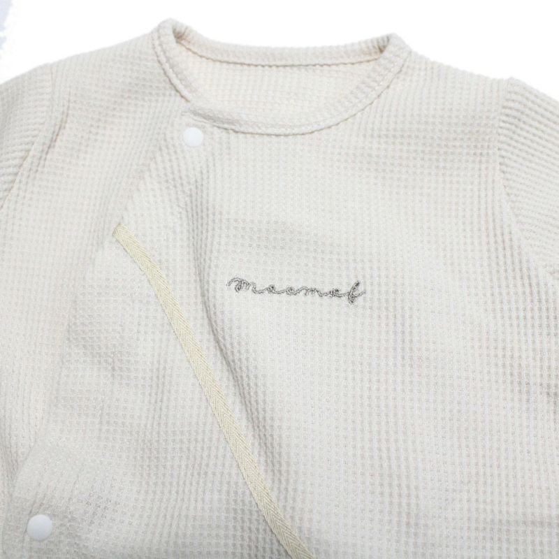 肌あたりの優しいワッフル地を採用したベビーロンパース。