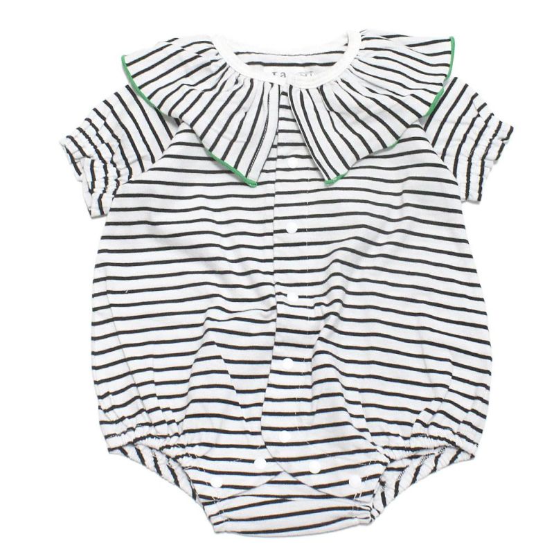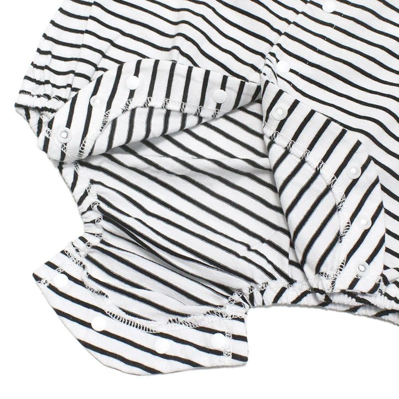 ボーダー柄がインパクト抜群のロンパース。
