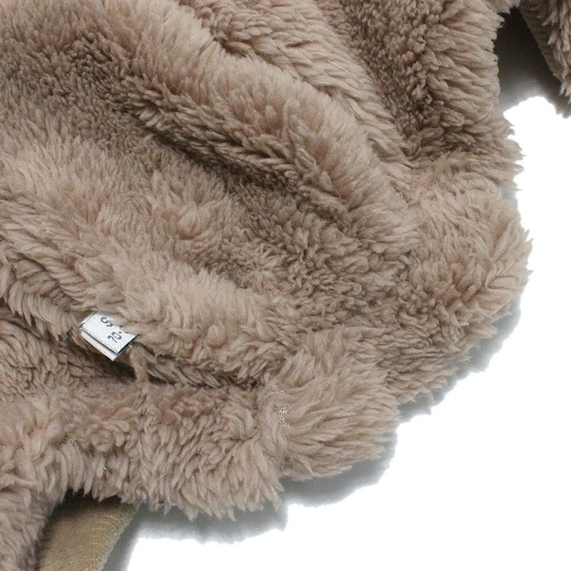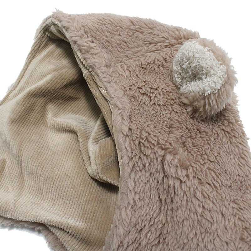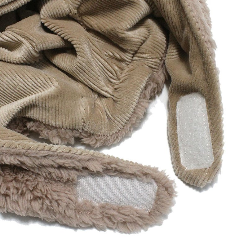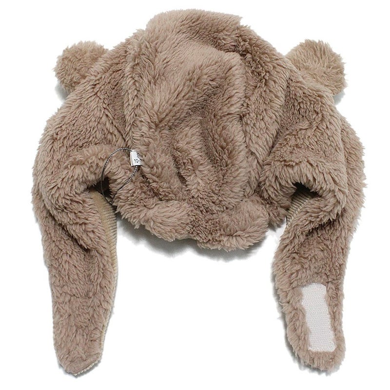 モコモコの生地で、ベビーの頭をすっぽり包みます。