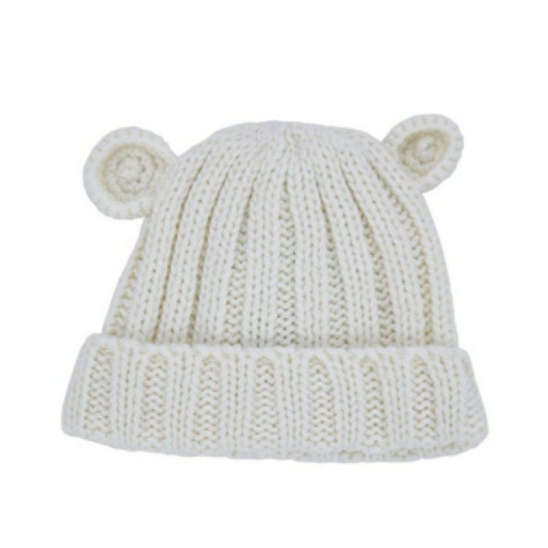 くまの耳が愛くるしいベビーニットキャップ。