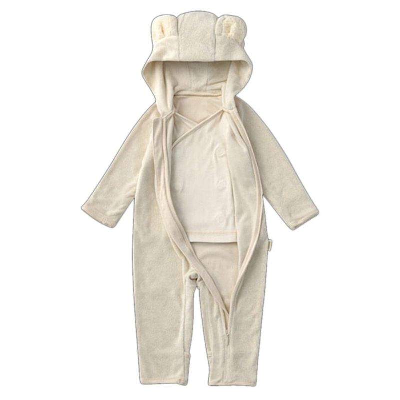 オーガニックコットンの肌着とパジャマが一緒になっており、別々に着せる手間もなし。