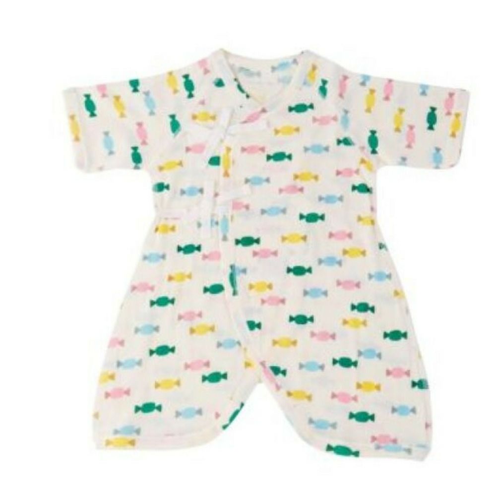 カラフルな色合いのキャンディ柄コンビ肌着。
