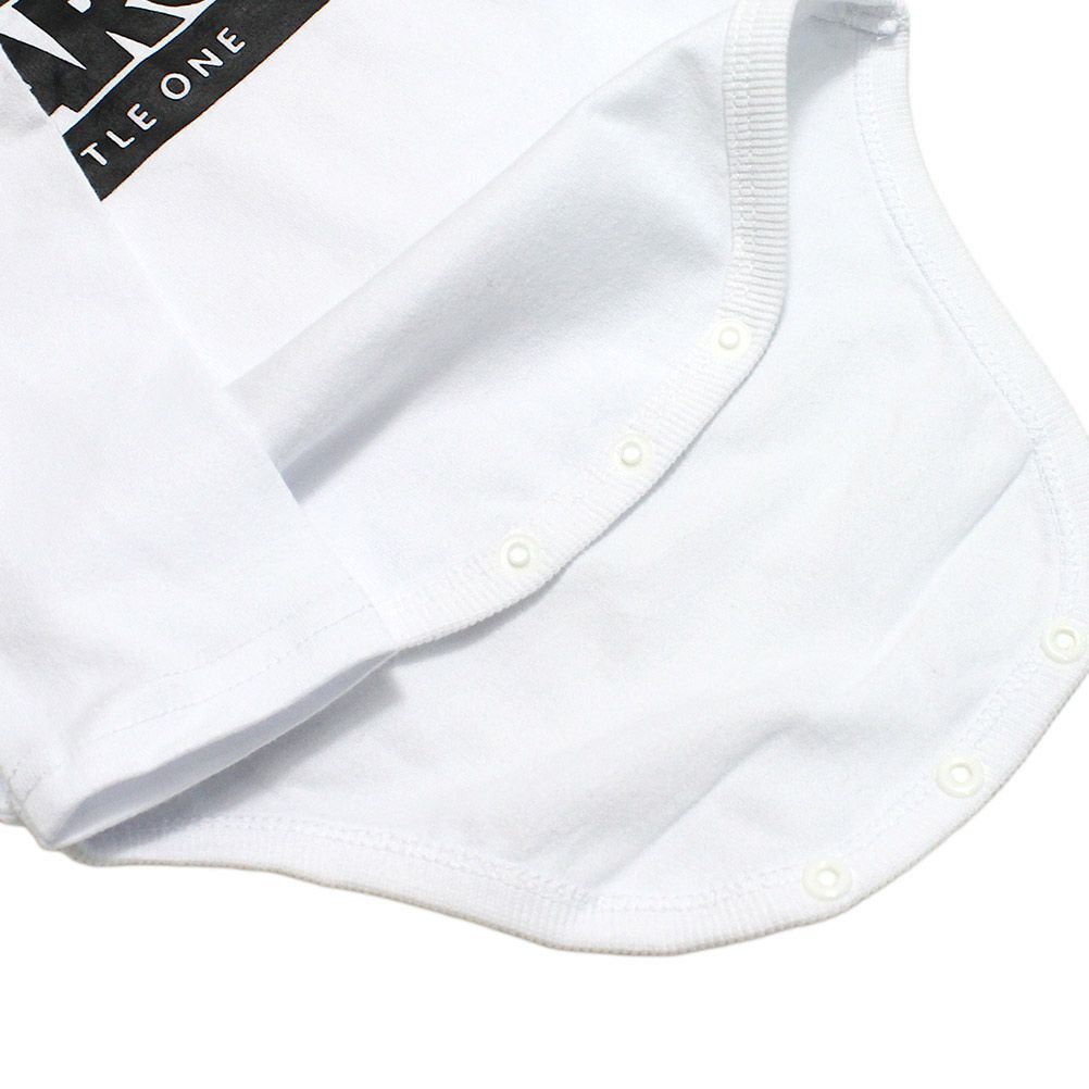 ロンパースは首と股下はスナップボタンで開閉が可能。