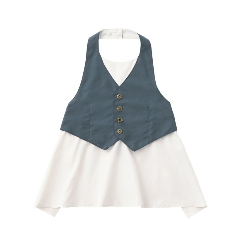 ギャルソンボーイをイメージしたお食事エプロン。カラーバリエーションを今の気分に一新しました。 長い着丈で、食べこぼしをカバーします。