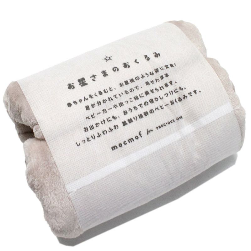 ふわふわの毛布素材のおくるみ。