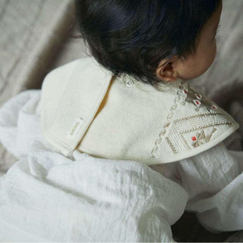 上質なオーガニックコットンのパイル地に、フレンチモロッカンをイメージしたグラフィカルな刺しゅうをほどこしました。