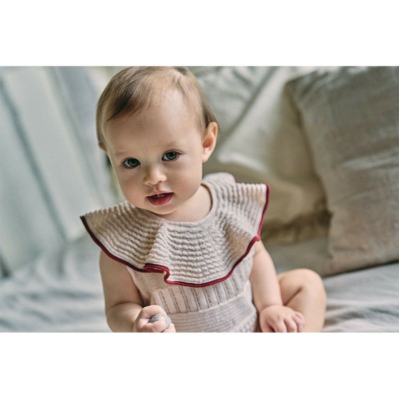 “マールマール”のMARLMARL ニットフリルロンパース ベニ