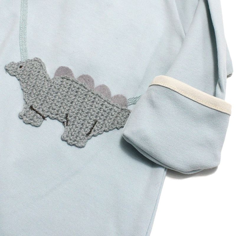 3. [モクモフ] 編みアップリケかんたんロンパース ブルー恐竜(BLK)