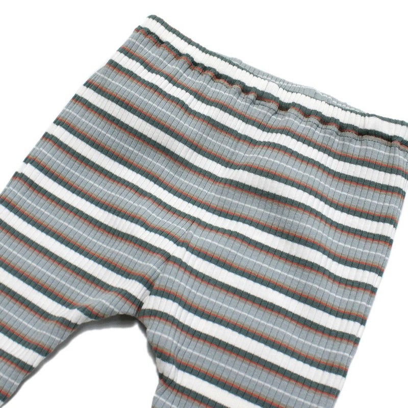 コーディネートのポイントになるボーダー柄のレギンス。