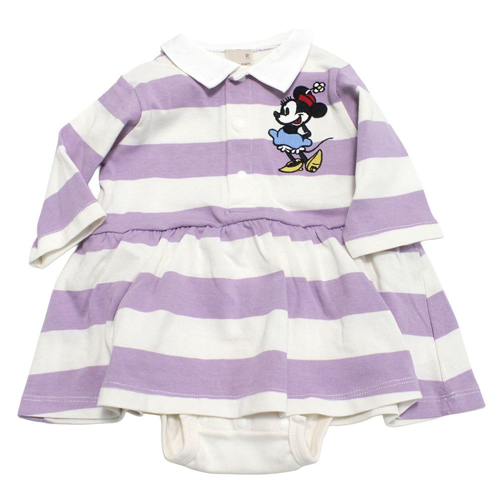大きなミニーマウスの刺しゅうが目を引くロンパースです。