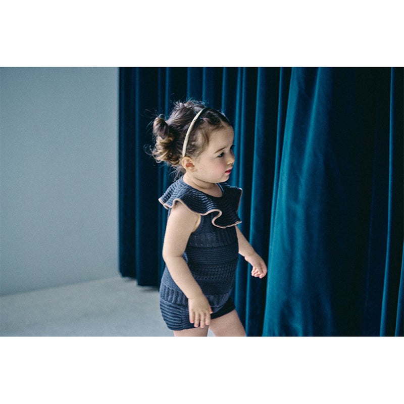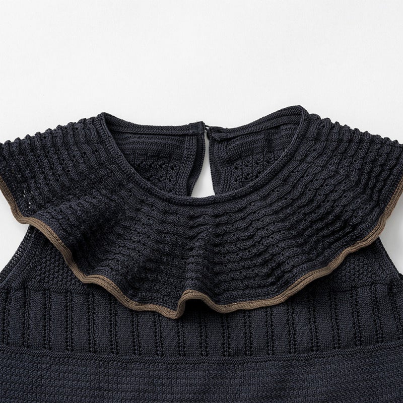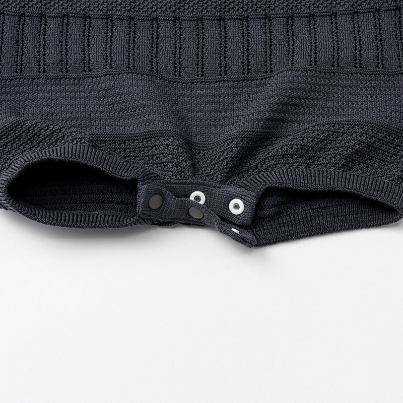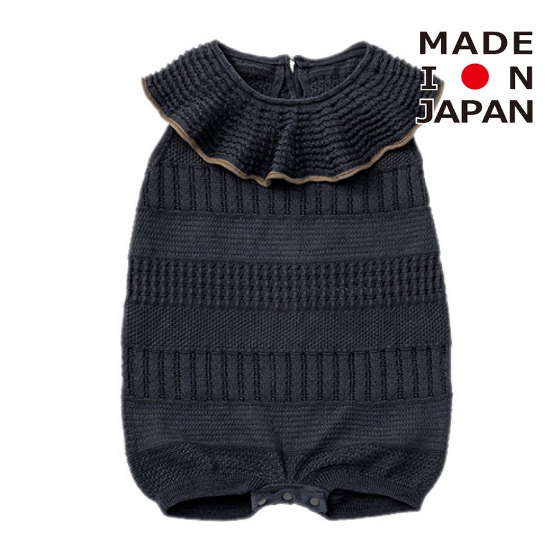 大人顔負けの高いファッション性と着心地にこだわった、サマーニットロンパースです。