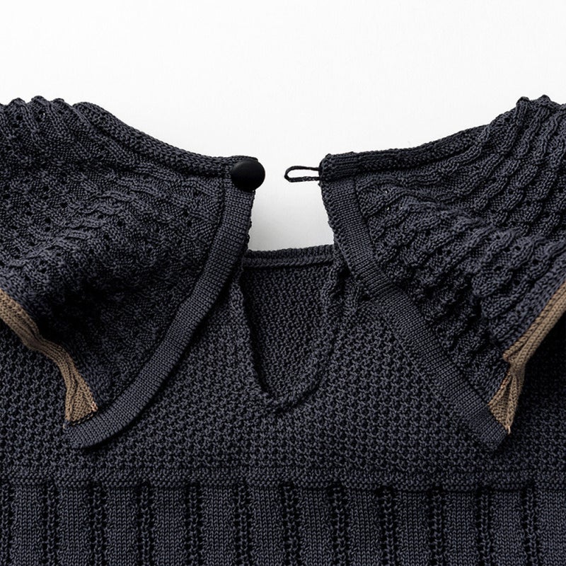 首のスリットから覗く肌がバックスタイルの抜け感に。