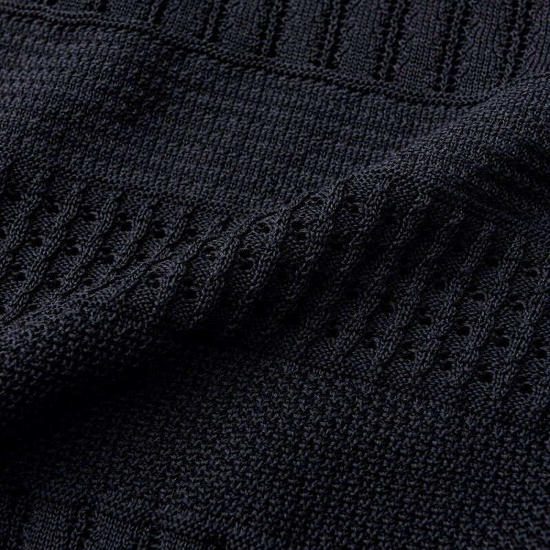 毛羽立ちを抑えた細いコットン糸で編み上げたボディはさらっと滑らかで上品な光沢。