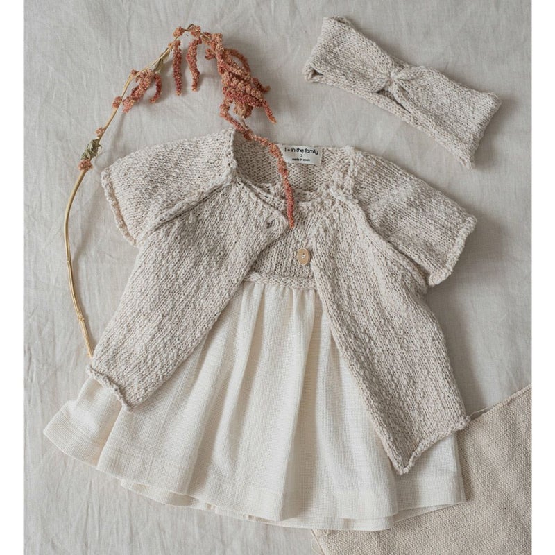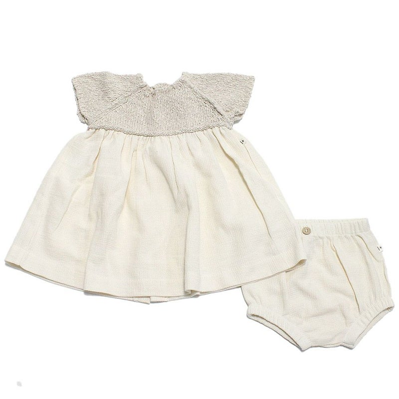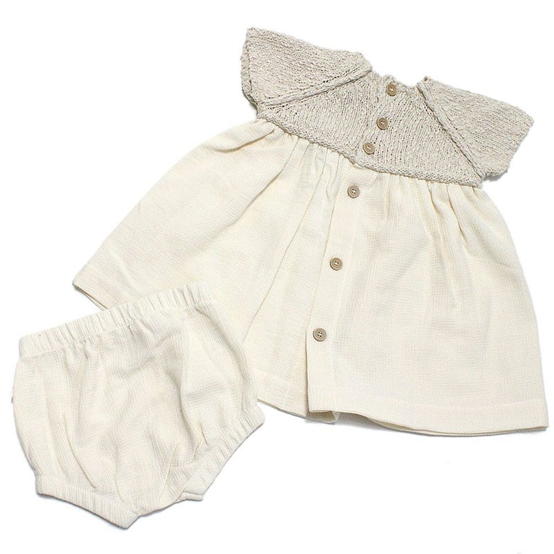 コットンニット編みのシンプルなワンピース。