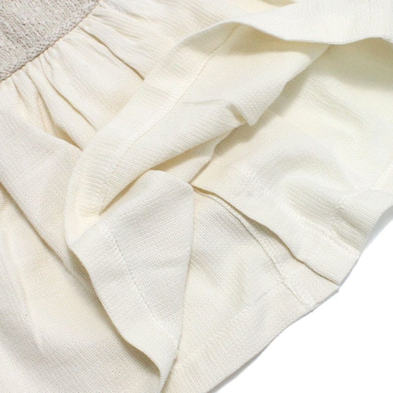 ウエスト部分から異なる生地を使用した切替デザインがポイントです。