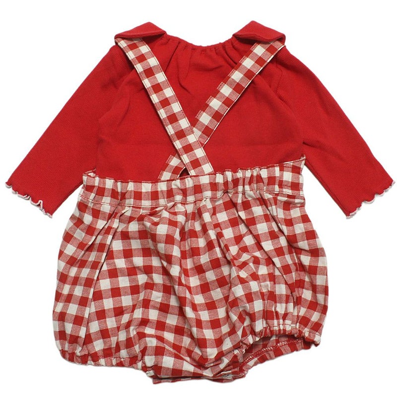 ブルマのような形が愛らしいオーバーオールとトップスのセット。