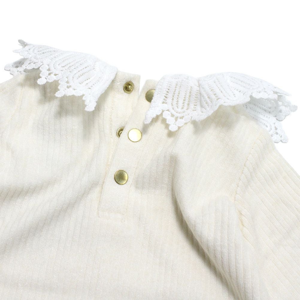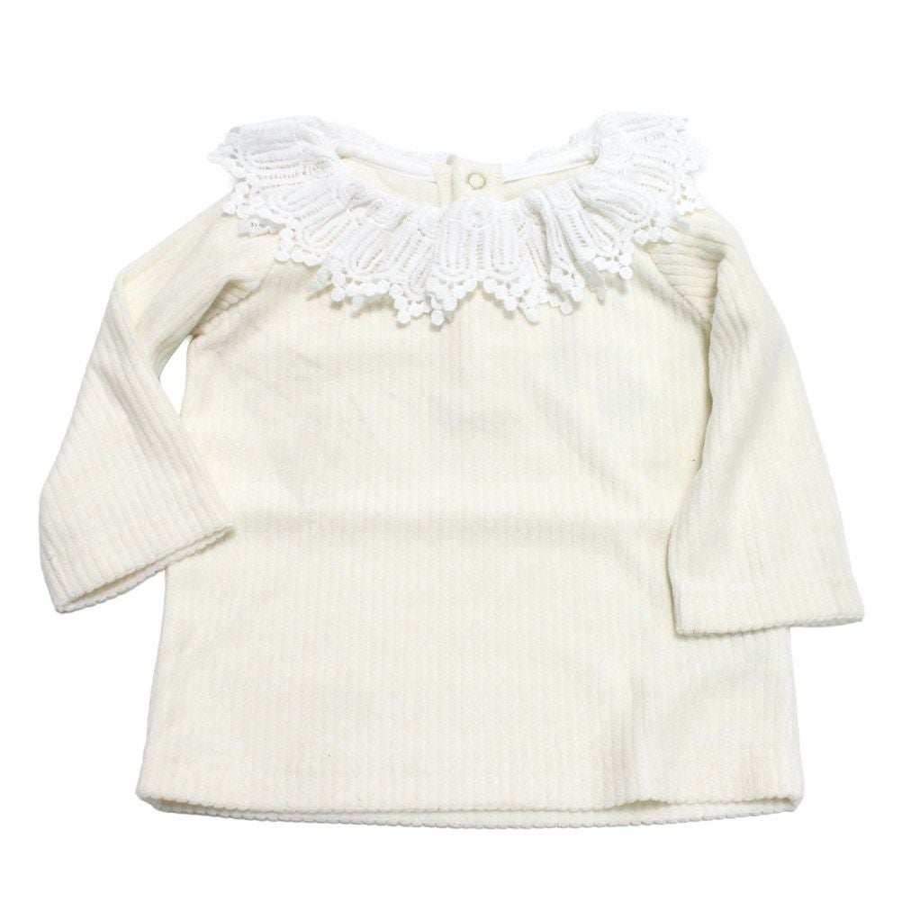 [マルーク] パウダーリブニットレースTシャツ シロ(1)