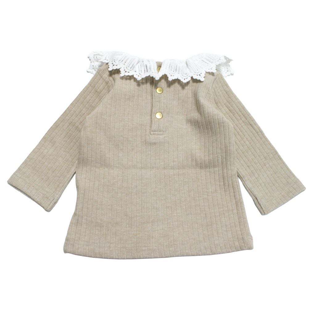 [マルーク] パウダーリブニットレースTシャツ ベージュ(12)
