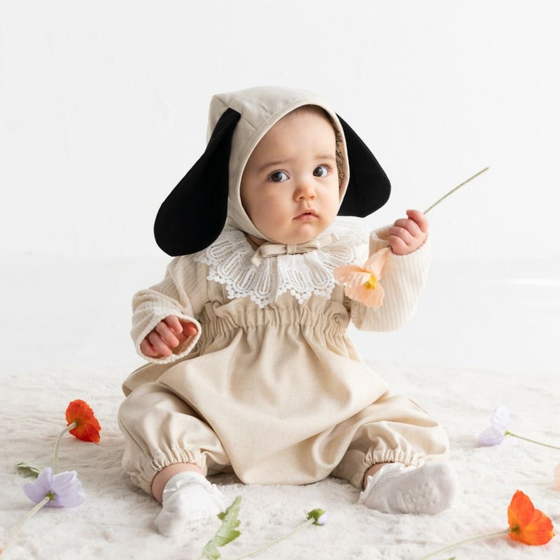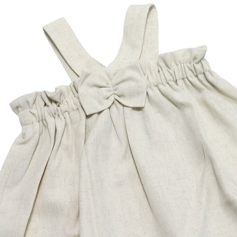 背中のリボンがアクセントに効いたロンパース。