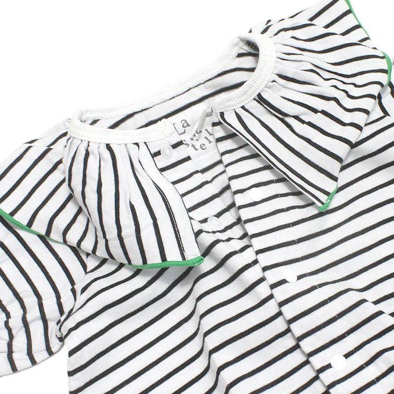 ボーダー柄がインパクト抜群のロンパース。