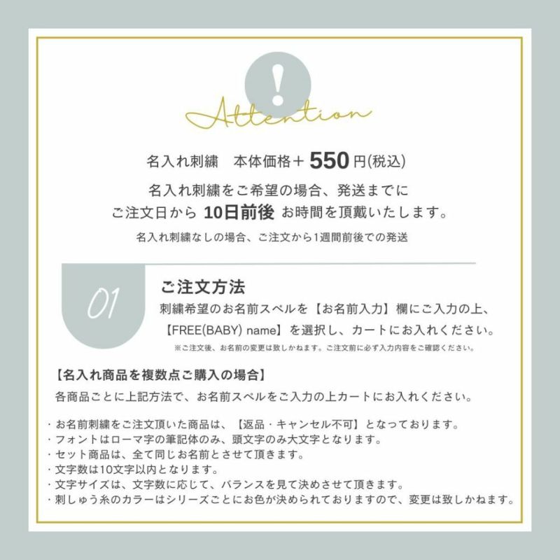 ※お名前刺繍をご注文頂いた商品は、【返品・キャンセル不可】となっております。