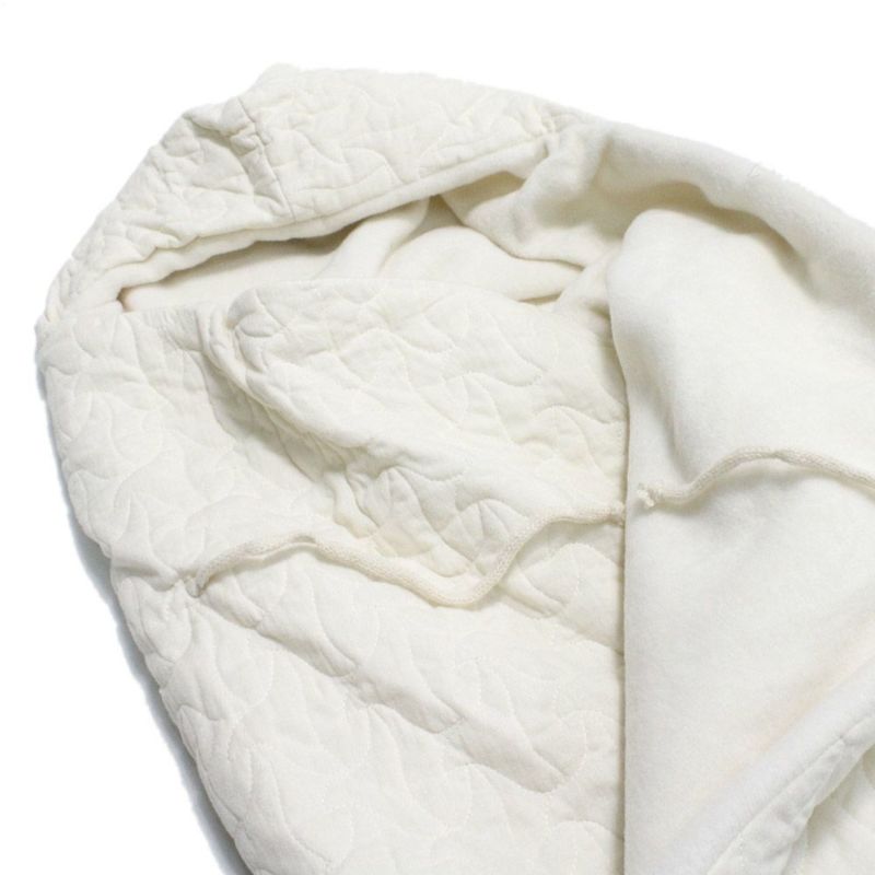 裏地のフリース素材が赤ちゃんを暖かく包み込むおくるみ。