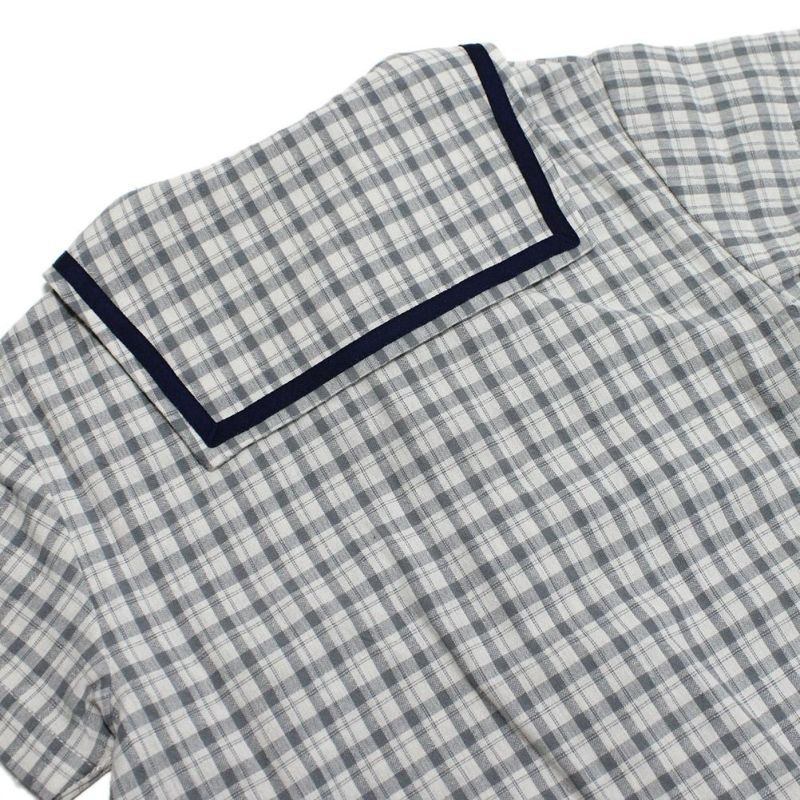 パイピングがアクセントに効いたセーラーカラーがポイント。