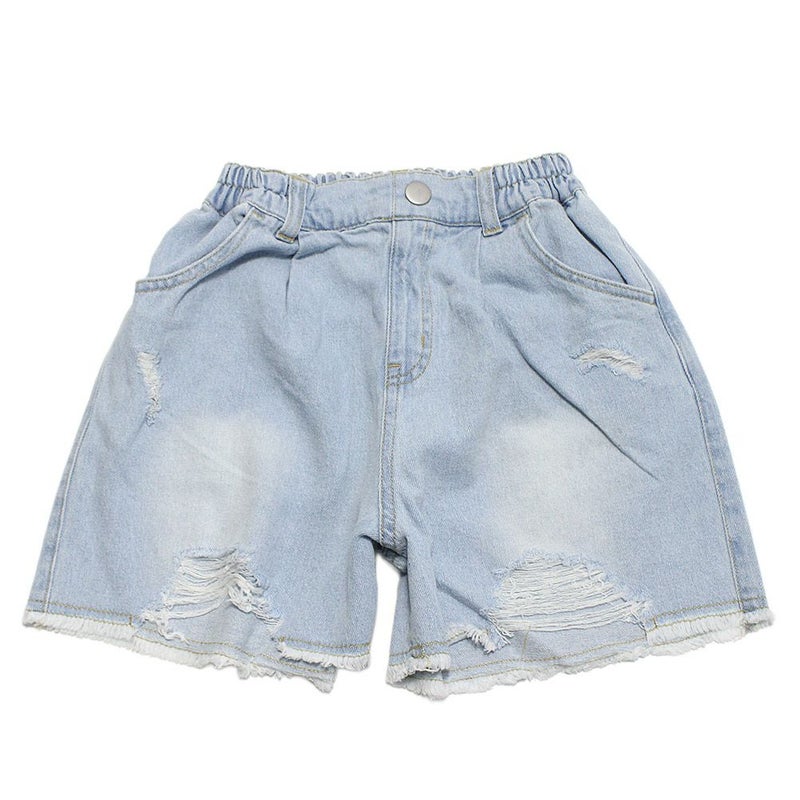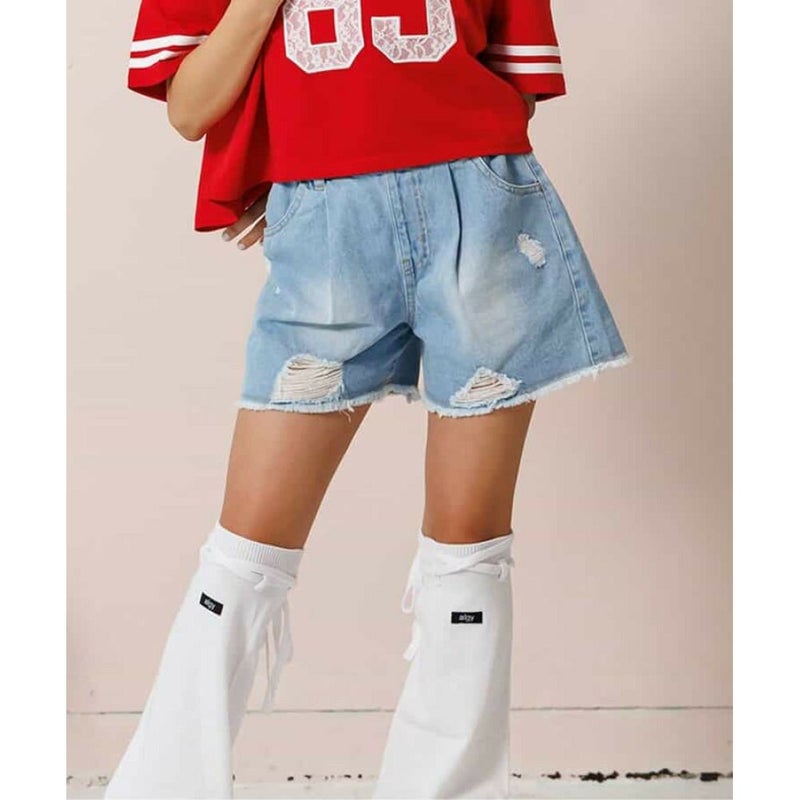 ダメージ加工が施されたデニムショートパンツ