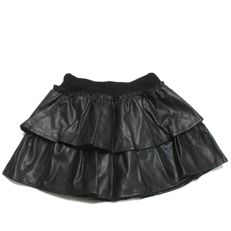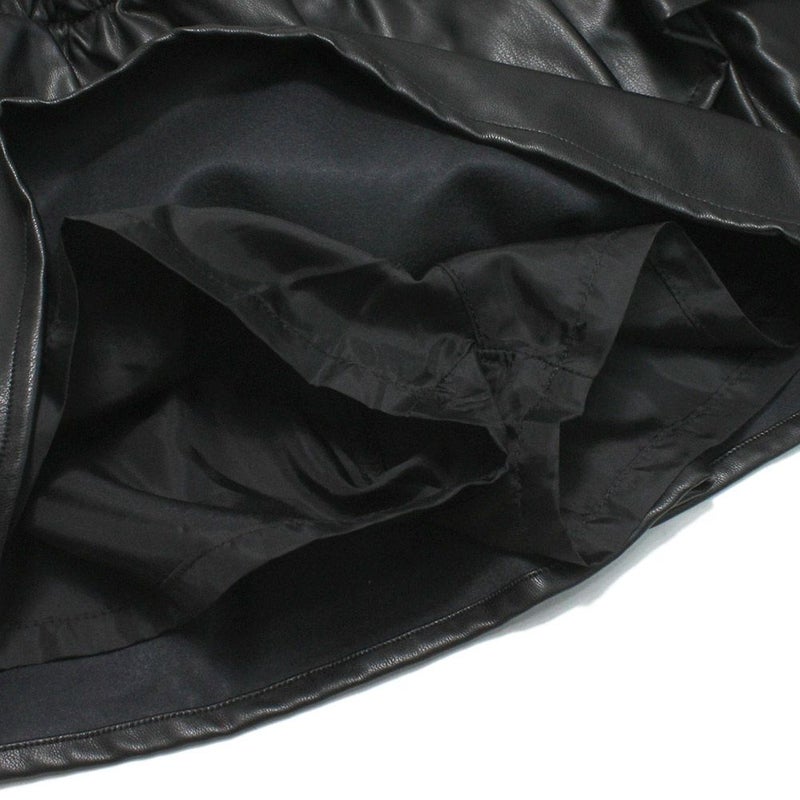 雰囲気の異なるフェイクレザーとチェックのミニ丈スカパン。