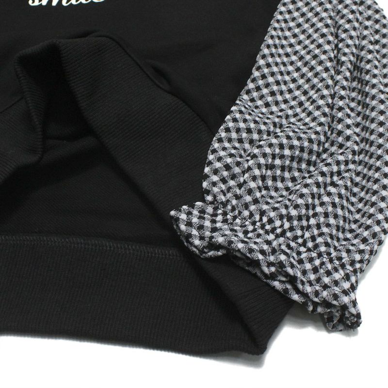 袖のチェックの切り替えが印象的なクルーネックスウェット。