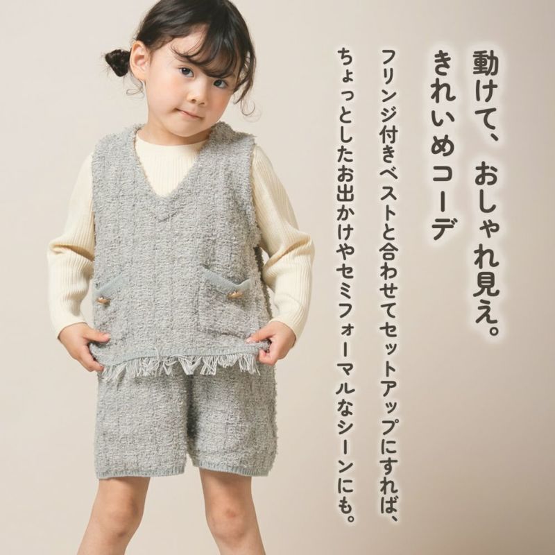 単体でカジュアルに着こなすのはもちろん、別売りのフリンジ付きベストと合わせてセットアップにすれば、ちょっとしたお出かけやセミフォーマルなシーンにもぴったり。