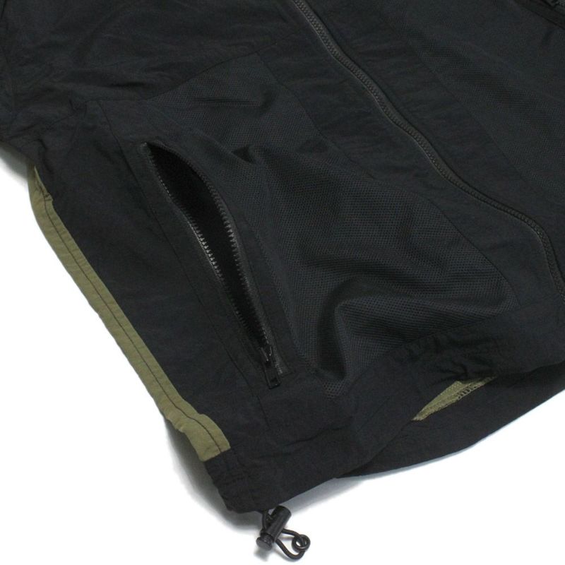 再生ナイロンを一部に使用したクレイジー切替パーカー。