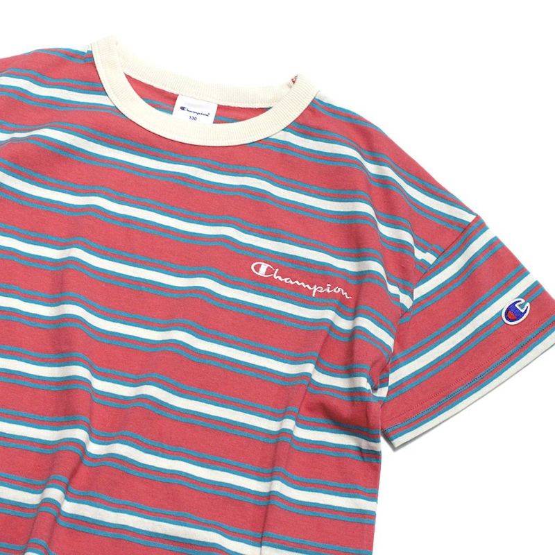 “チャンピオン キッズ”のボーダーショートスリーブTシャツ