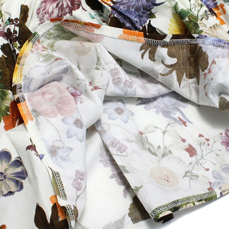 華やかなフローラルプリントのスカート。