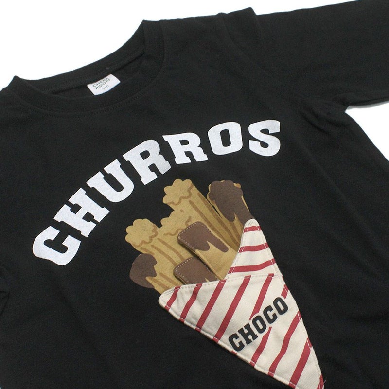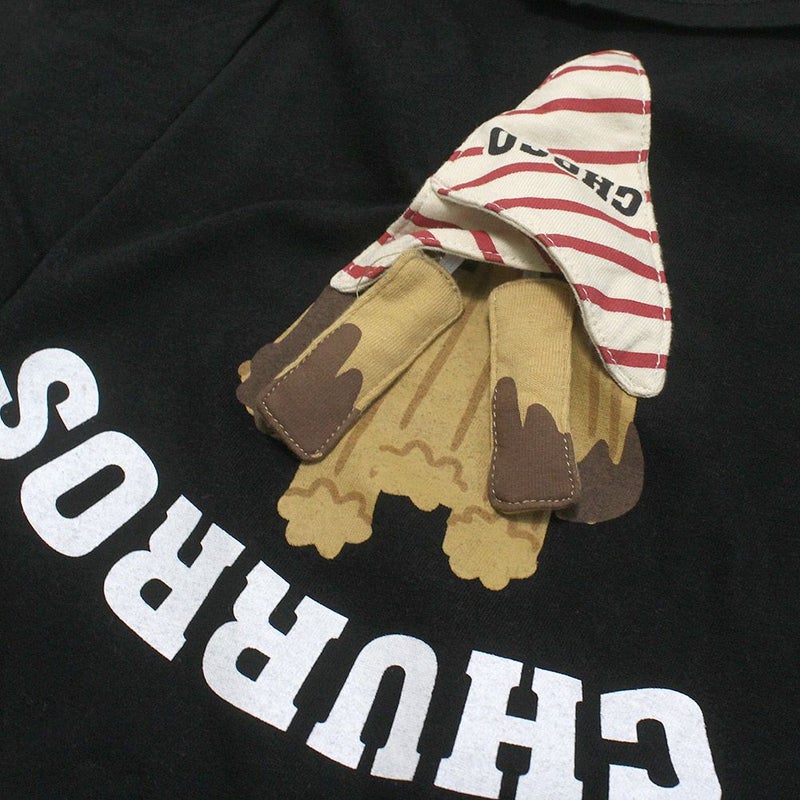 チョコチュロスのアップリケを引っ張って遊べる仕掛け付き。