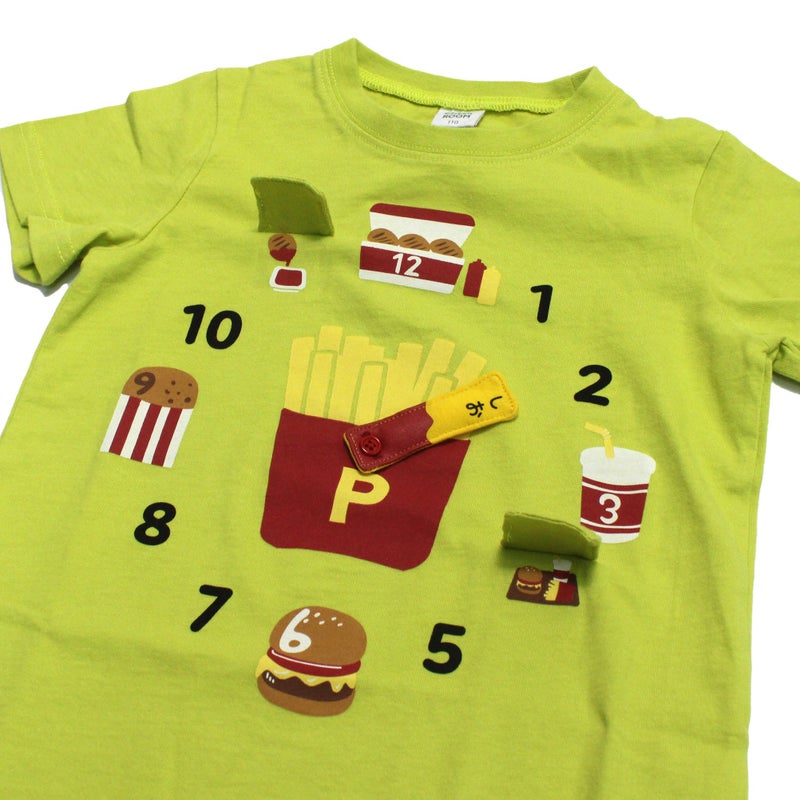 時間がめくれるジャンクフードの時計tシャツです。
